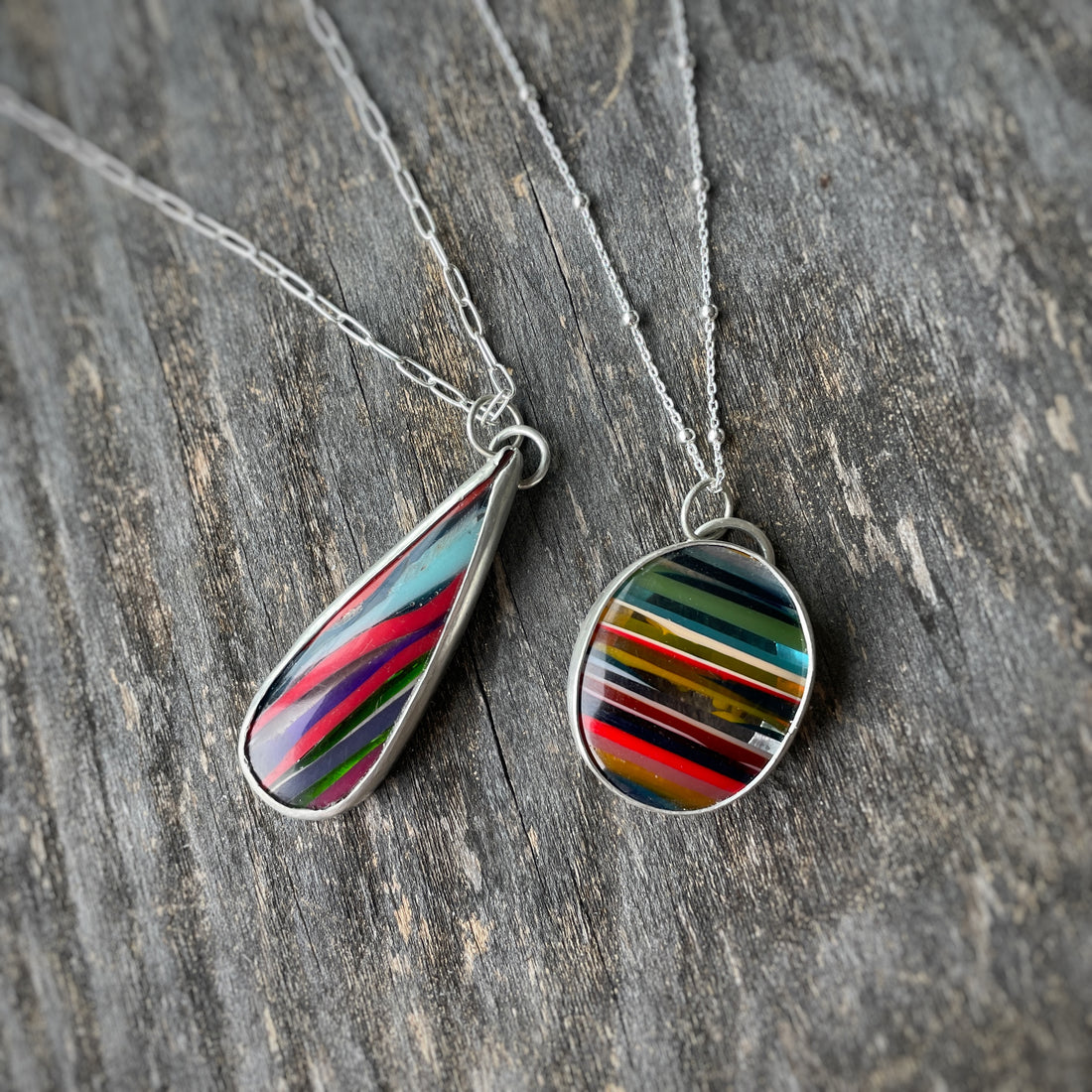 - Surfite - colorful striped cabochons hand-cut from the hardened overspill of acrylic in making surfboards. Check out this example.