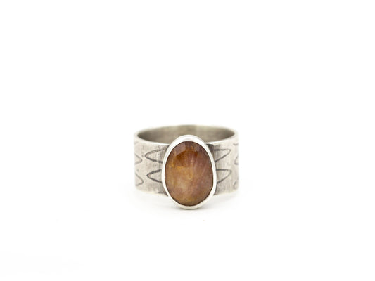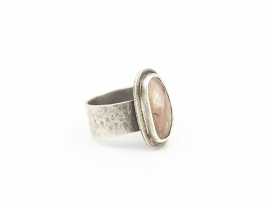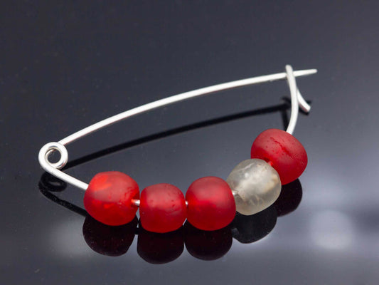 Red - Sterling and Glass Trade Bead Fibula Brooch
