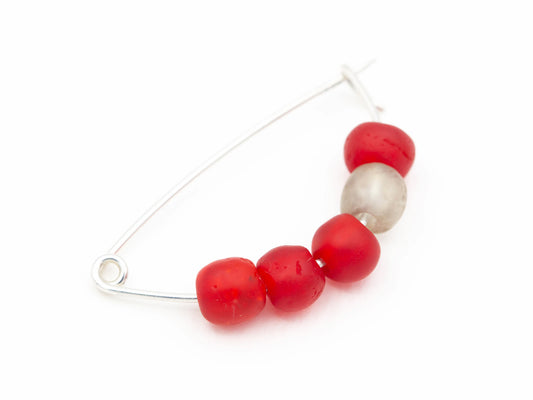 Red - Sterling and Glass Trade Bead Fibula Brooch