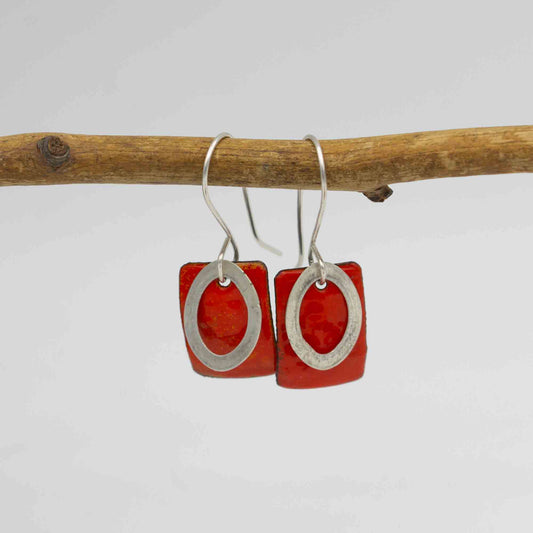 Rectangular Enamelled Copper and Sterling Silver Earrings
