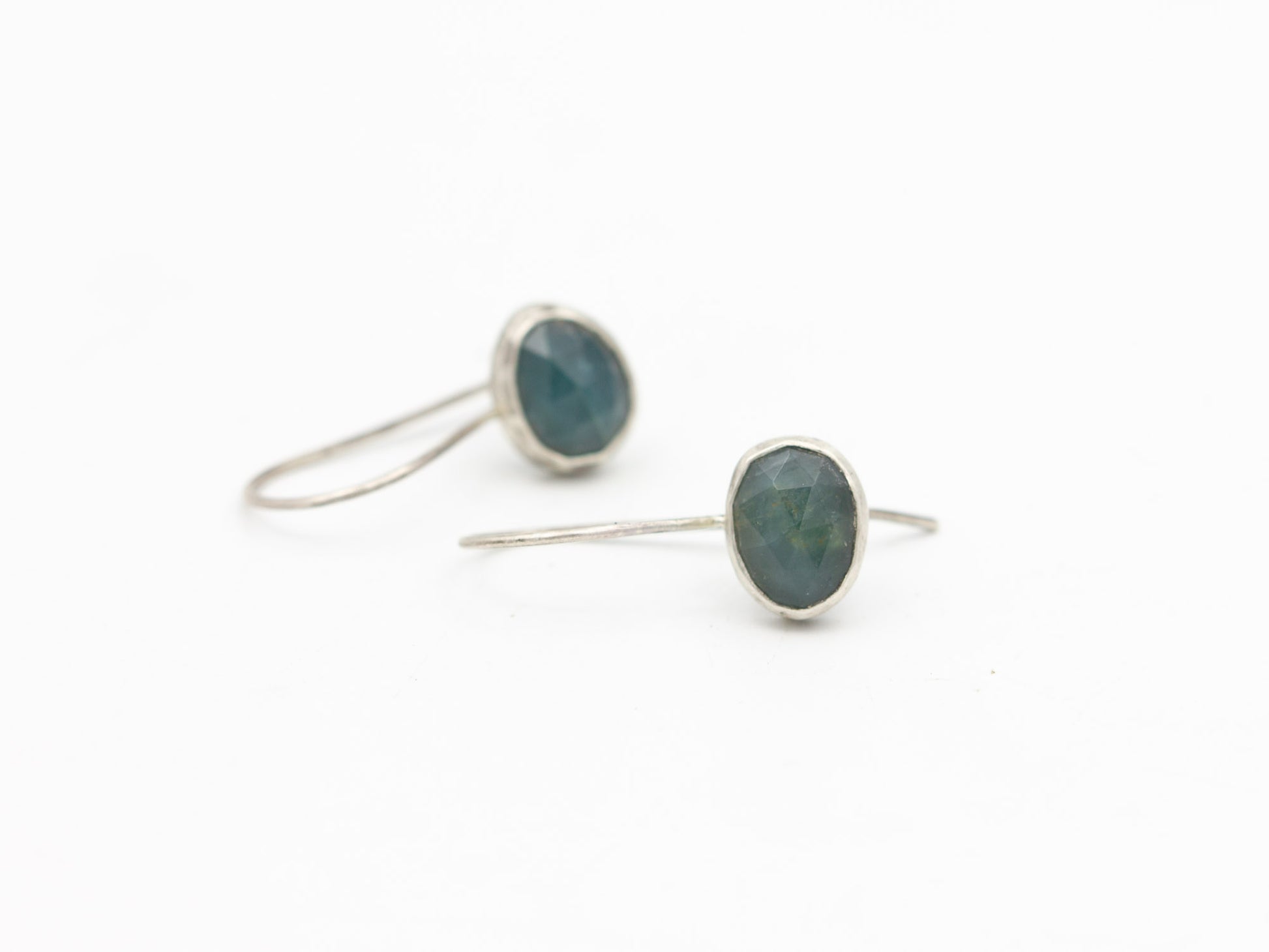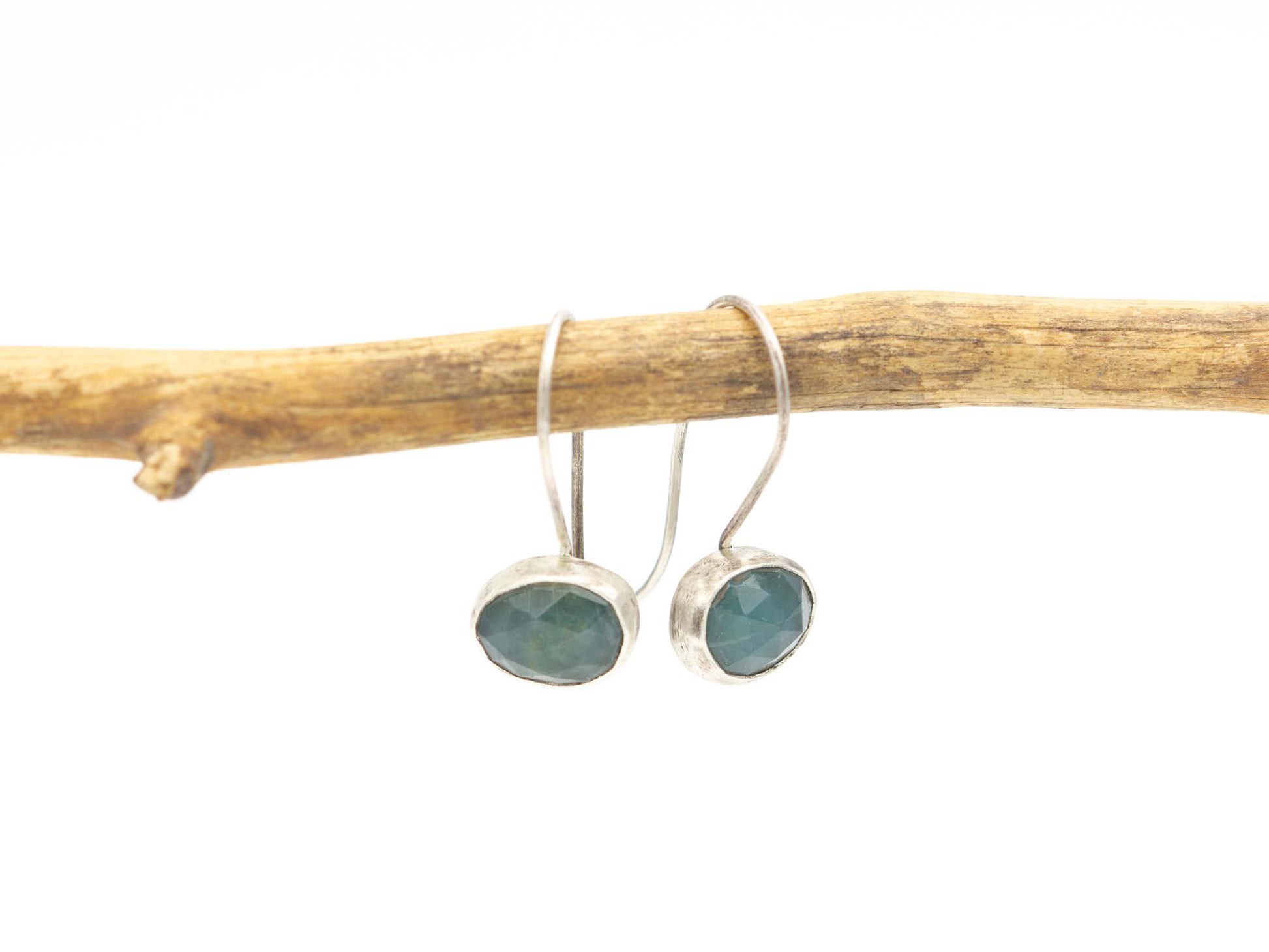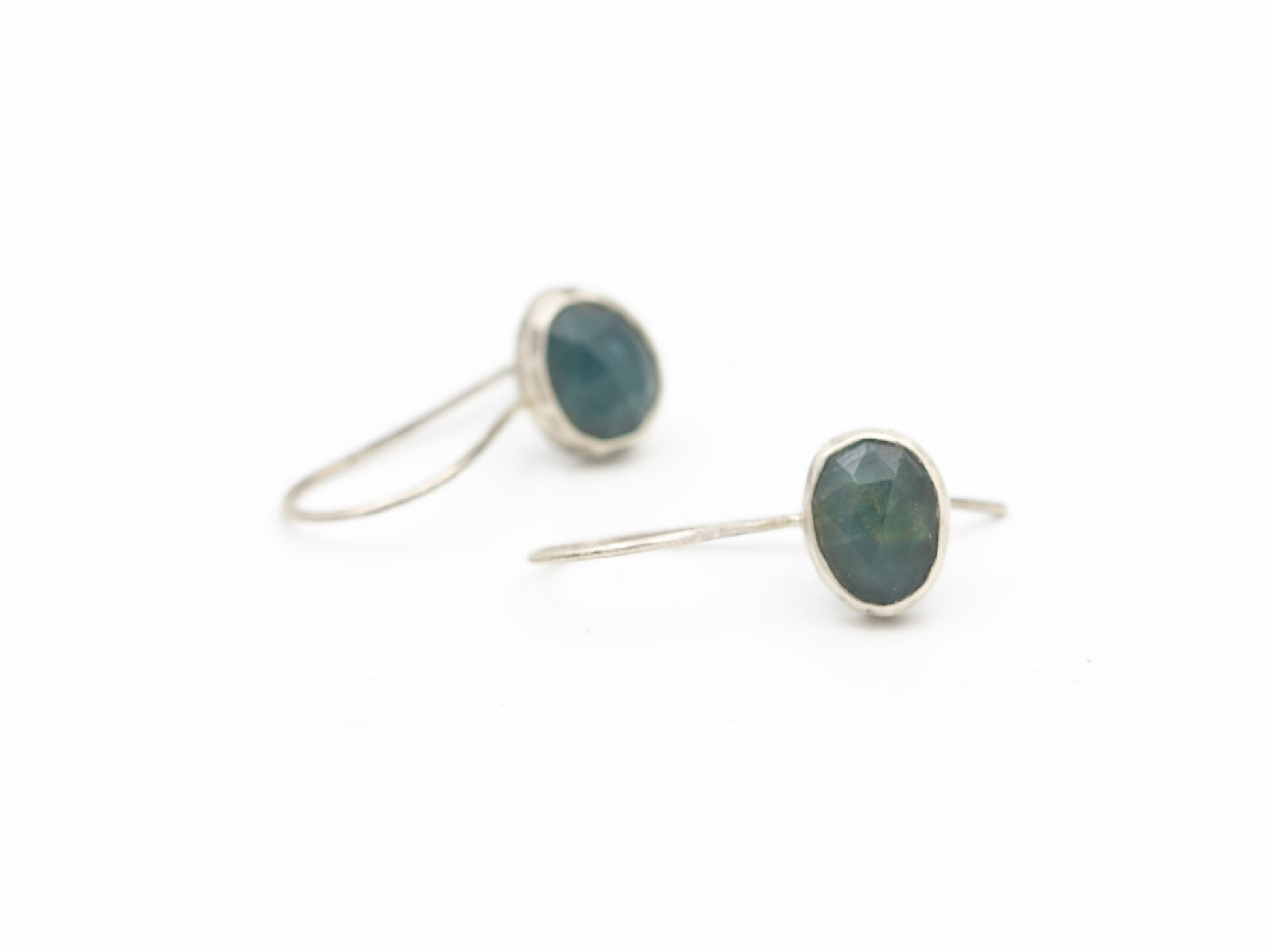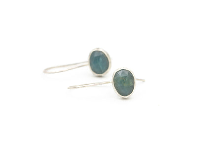 Sweet rose-cut, sea-green grandidierite earrings to elevate your summer look! They're bezel set in fine silver and sterling and hang from sterling ear wires. They're so unique and deliver a fun boho-chic vibe.