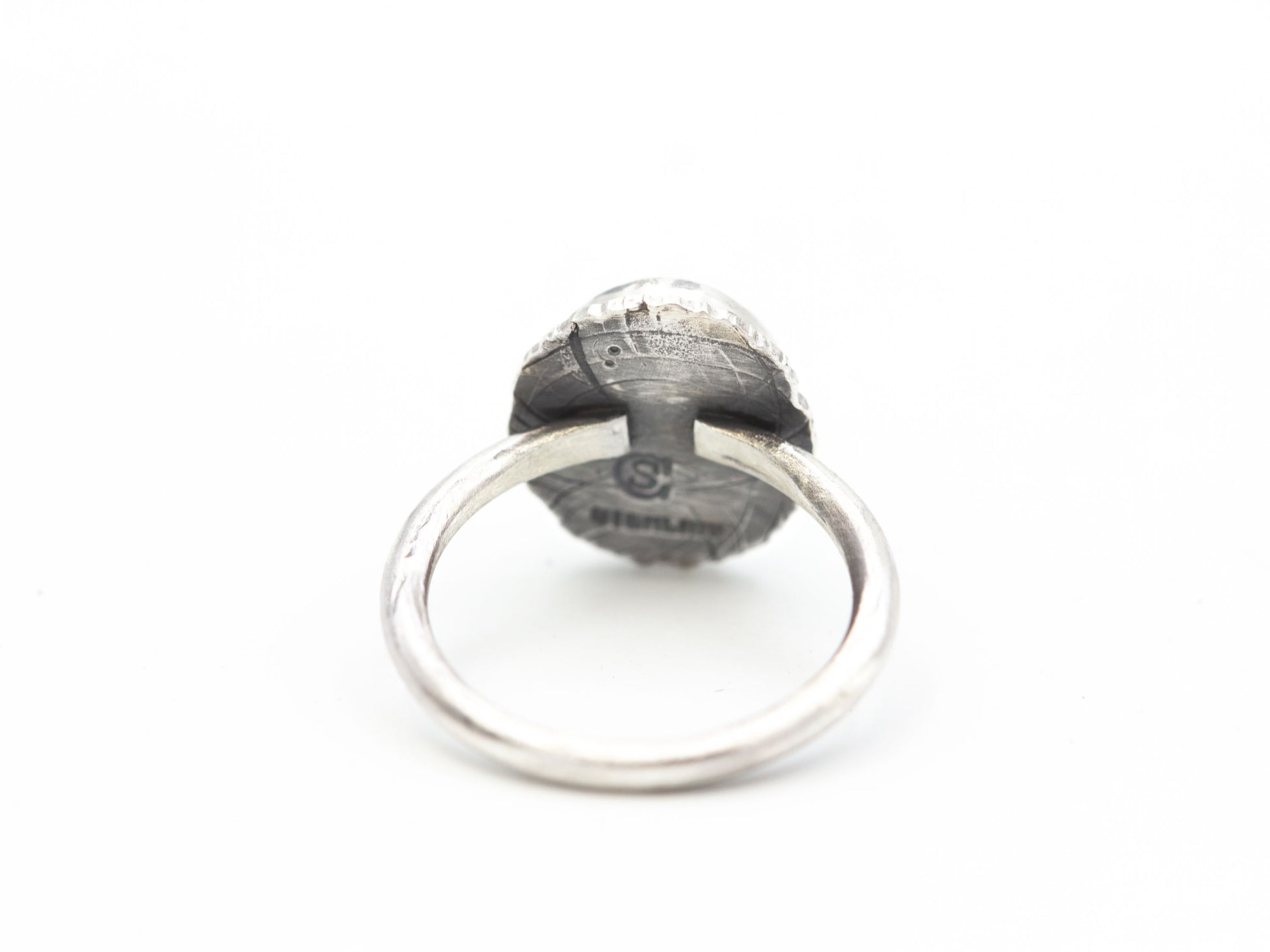 I gave it a fine silver and sterling bezel setting with a slight border, which I textured around the edges. This is soldered onto the sterling band.