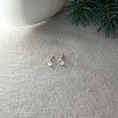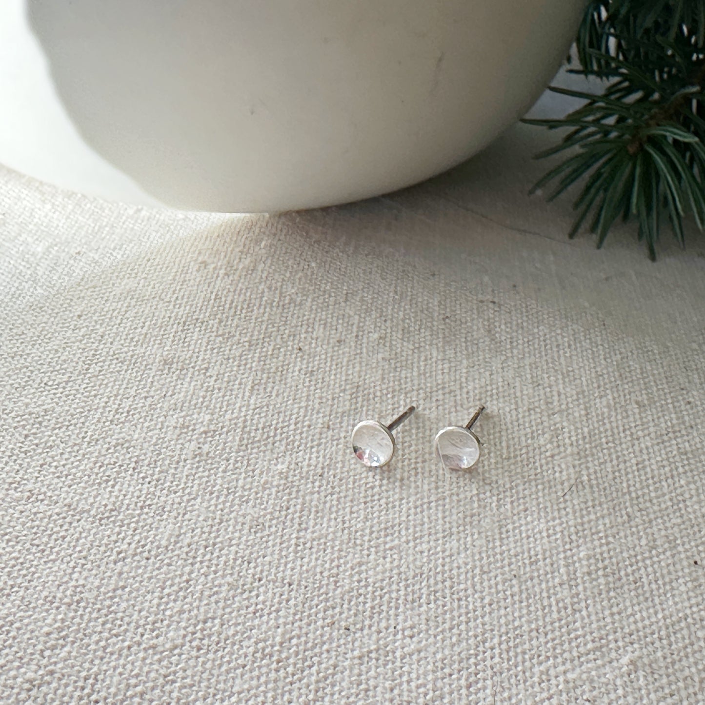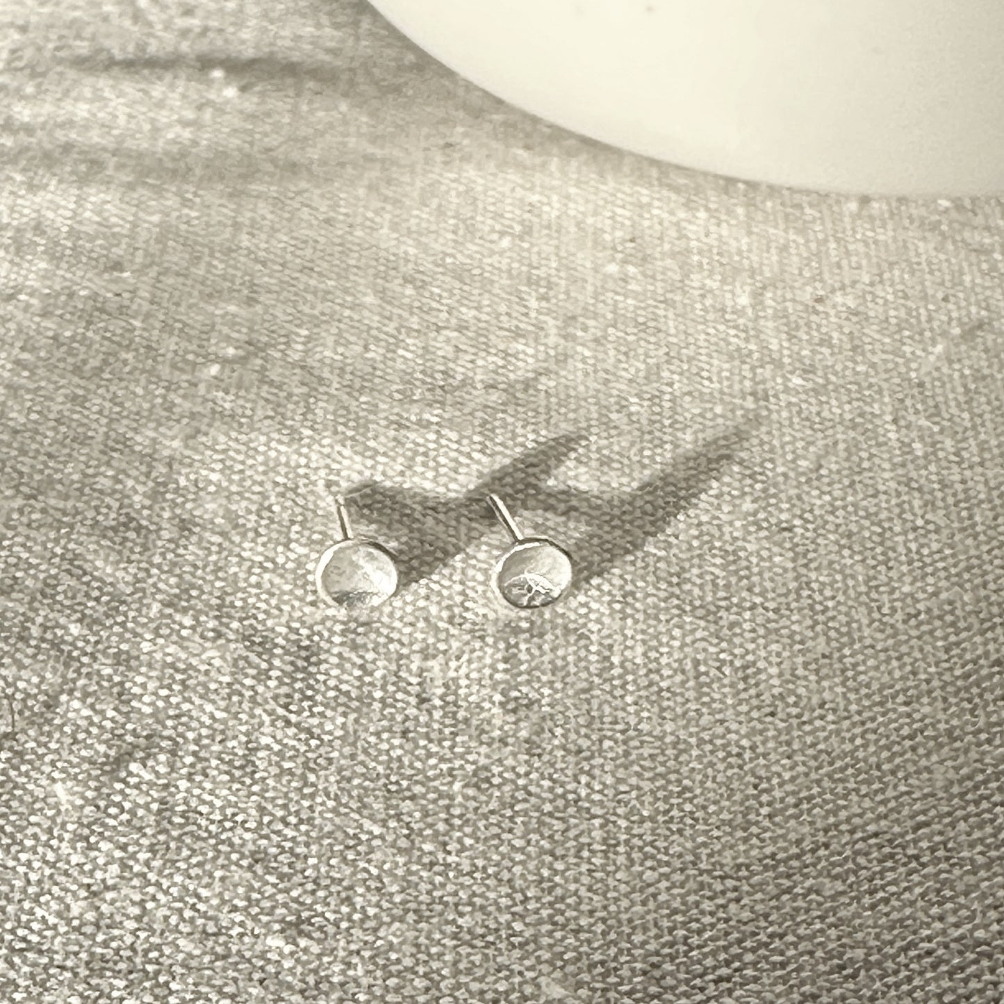 These petite tuds began with a sheet of sterling silver which I imprinted with a leaf. It's very faint but there, nonetheless! I formed two circles into cup shapes, added sterling posts, gave them a good polish, and voilà! A unique pair of earrings to wear now and forever. They also are a perfect gift!