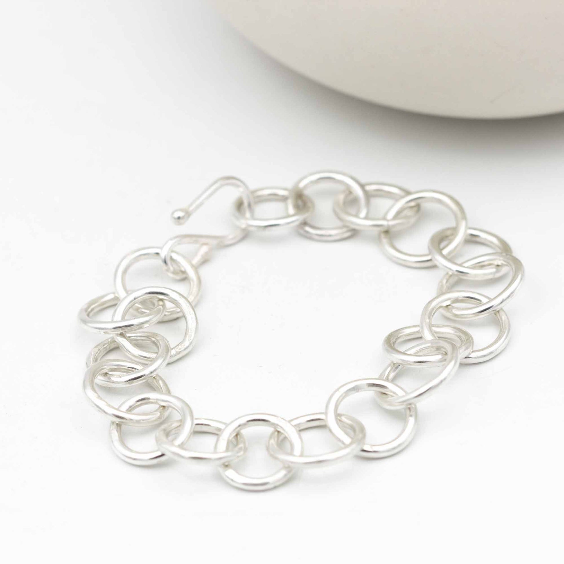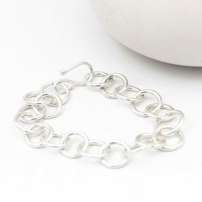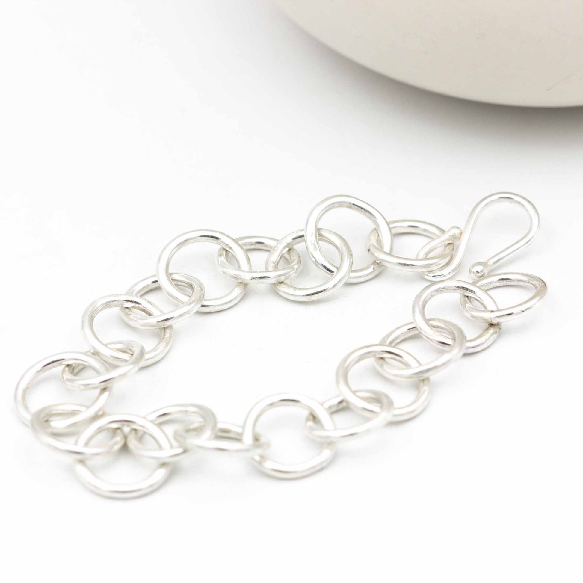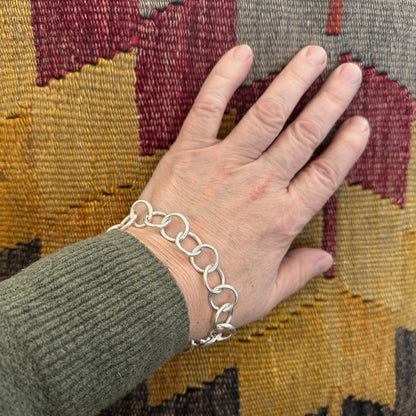 This is a wonderful handmade sterling silver link bracelet to add to your collection! You'll probably want to wear it at all times and make it your signature piece. This type of bracelet is always one of my go-to's. It's versatile, made from substantial sterling wire by my hands, and it's fun to wear. It will become a conversation piece and you'll love its movement as you go through your day. It's a reminder of your uniqueness.