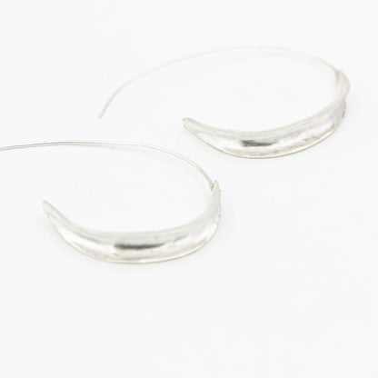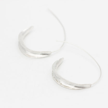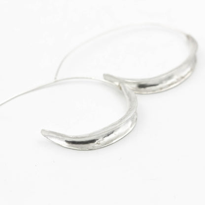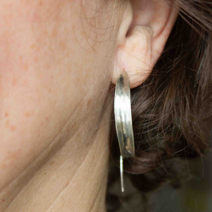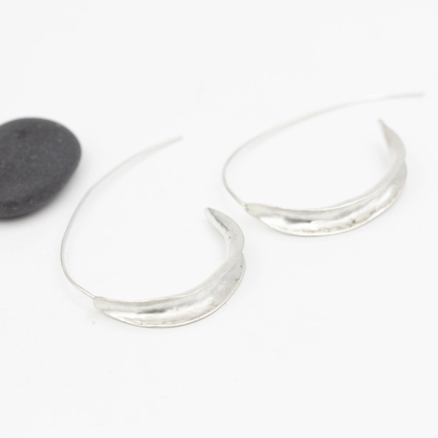 These anticlastic hoop earrings are such an elegant form! I created them through a specific series of hammer blows to flat sterling metal sheet with various special hammers and stakes. I then soldered on curved sterling ear wires which come with rubber stoppers to wear with them if you like. They are amazingly fun to wear and oh-so-unique! You'll definitely get noticed when you wear these. They go with everything and could become your signature earrings.