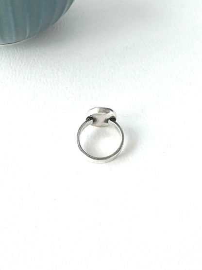 SIZE: This lovely stone is about 13mm x 12mm (1/2" x 1/2") and the ring is size 6.75.