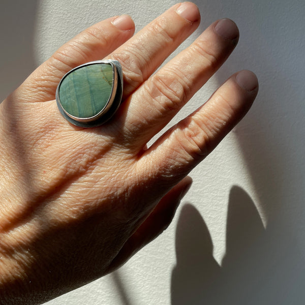 • the stone is 28mm x 23mm (1 1/16" x 7/8") and the ring is adjustable. Just let me know your size when checking out, and I can adjust it for you