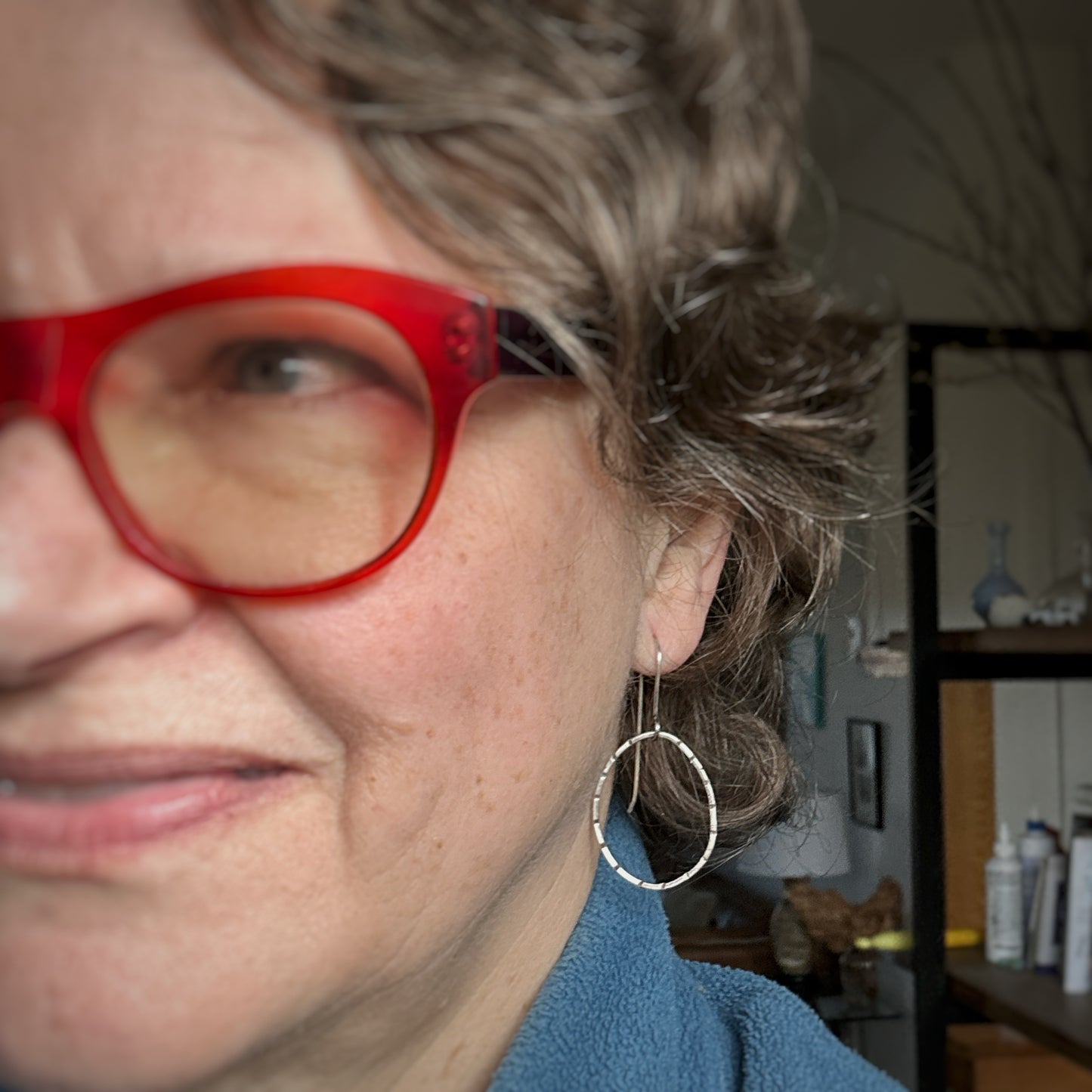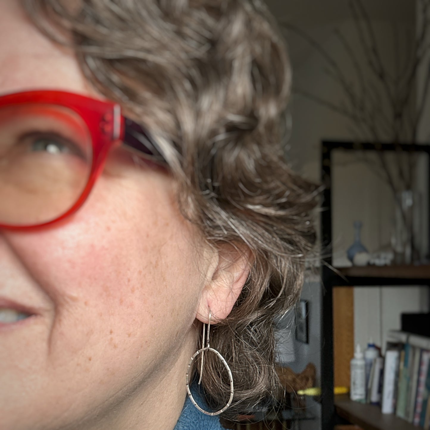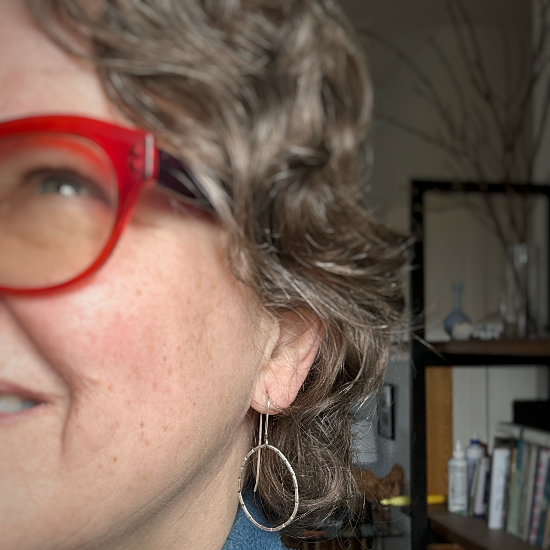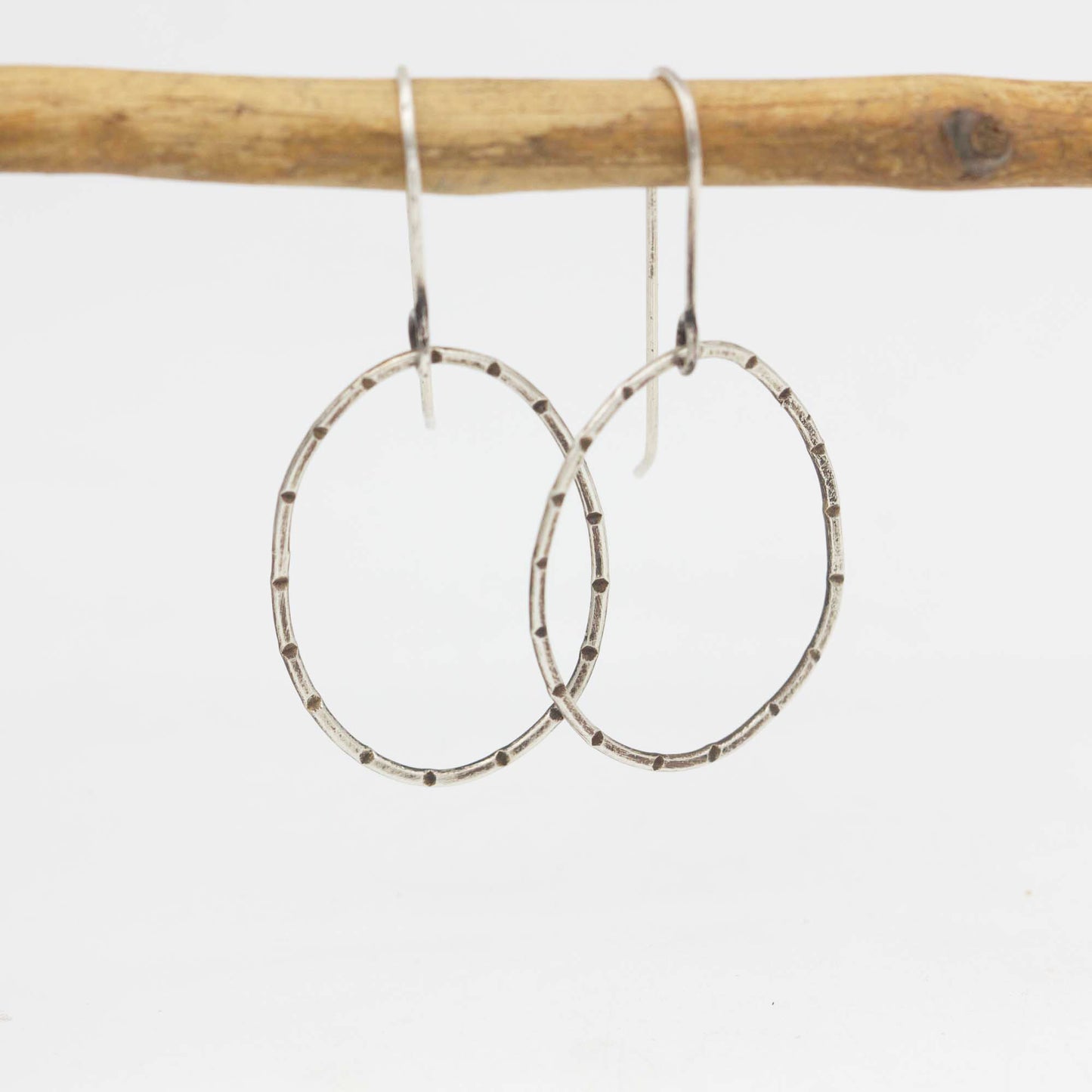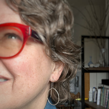 Looking for something fresh and fun for spring? Add these wonderful kinetic sterling hoops. You'll love wearing them to add a spring boost to your unique style! Two sterling ovals have a subtle line texture stamped into them and are free to rotate and float around on the handmade sterling ear wires. Lots of fun and you'll definitely be noticed!