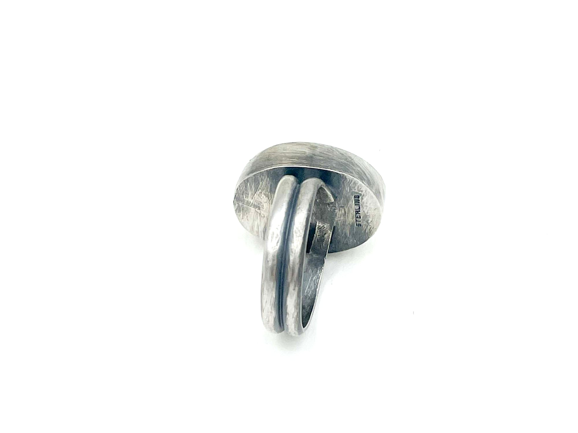 This is a lovely gold-toned lodolite (or garden quartz) oval stone that I designed a fine silver and sterling statement ring around. The stone has what looks like an underwater scene going on if you look into it. It also has a white semi-opaque spot in one spot, just under the surface, which is just part of the stone. I gave it a simple bezel setting and a split shank. It's a great ring to wear every day and forever! It would also make a very unique gift!