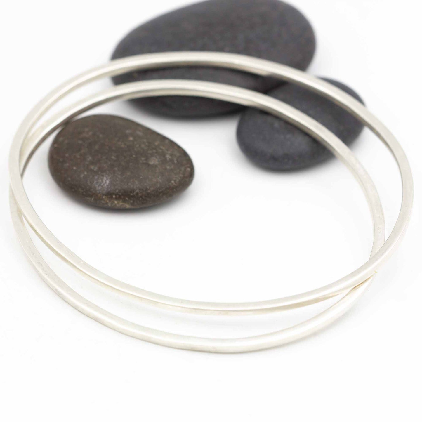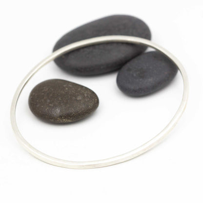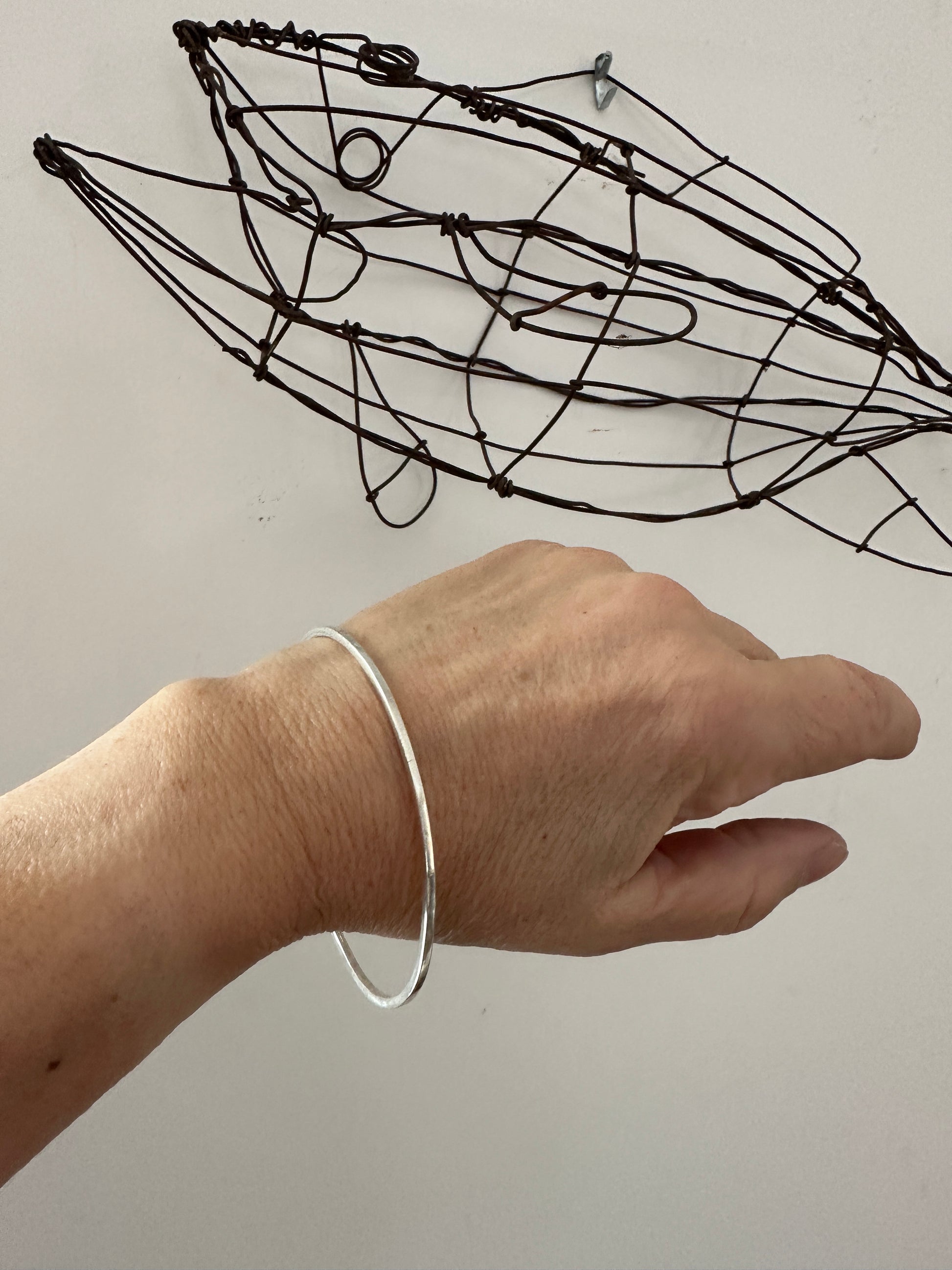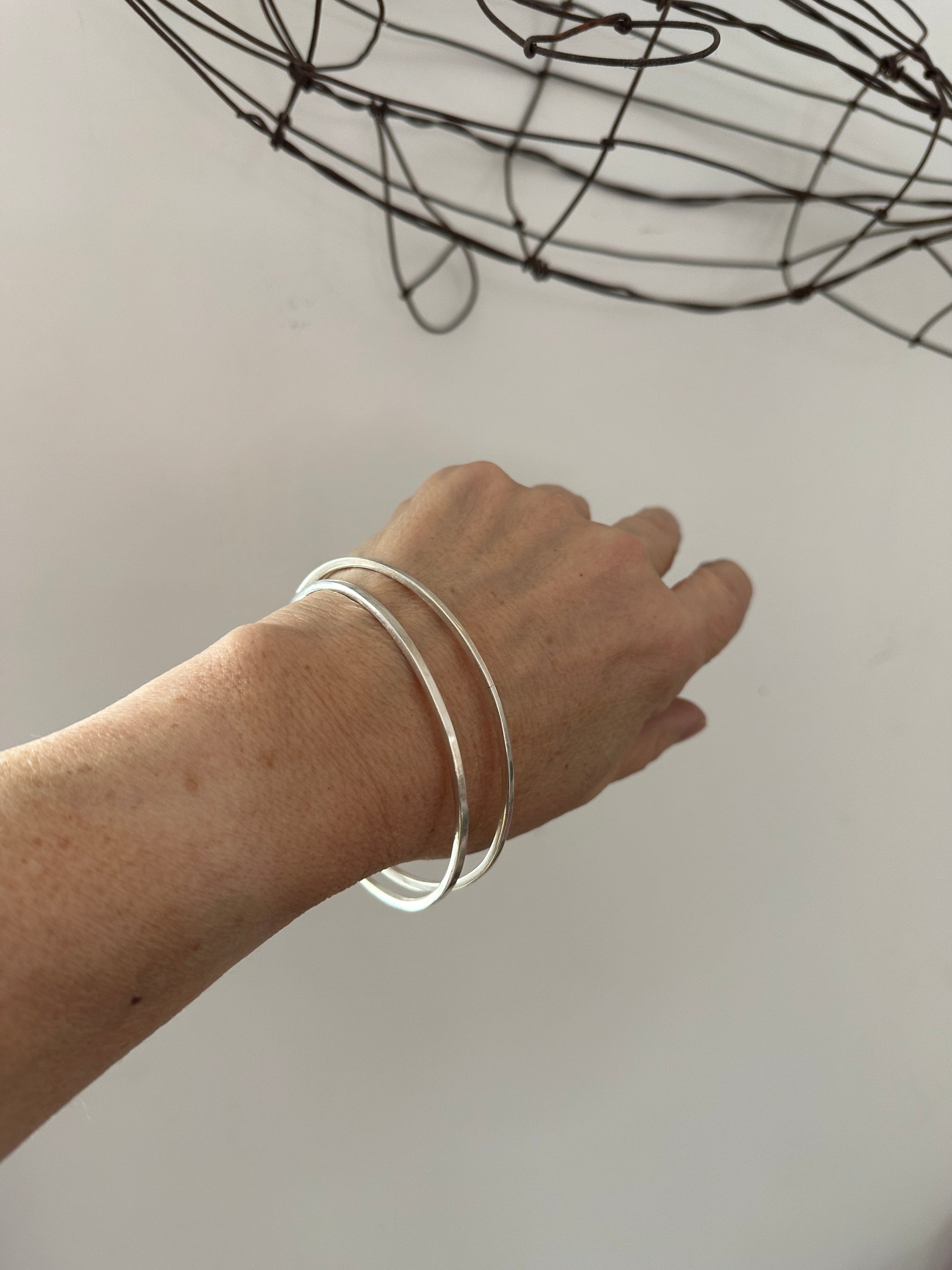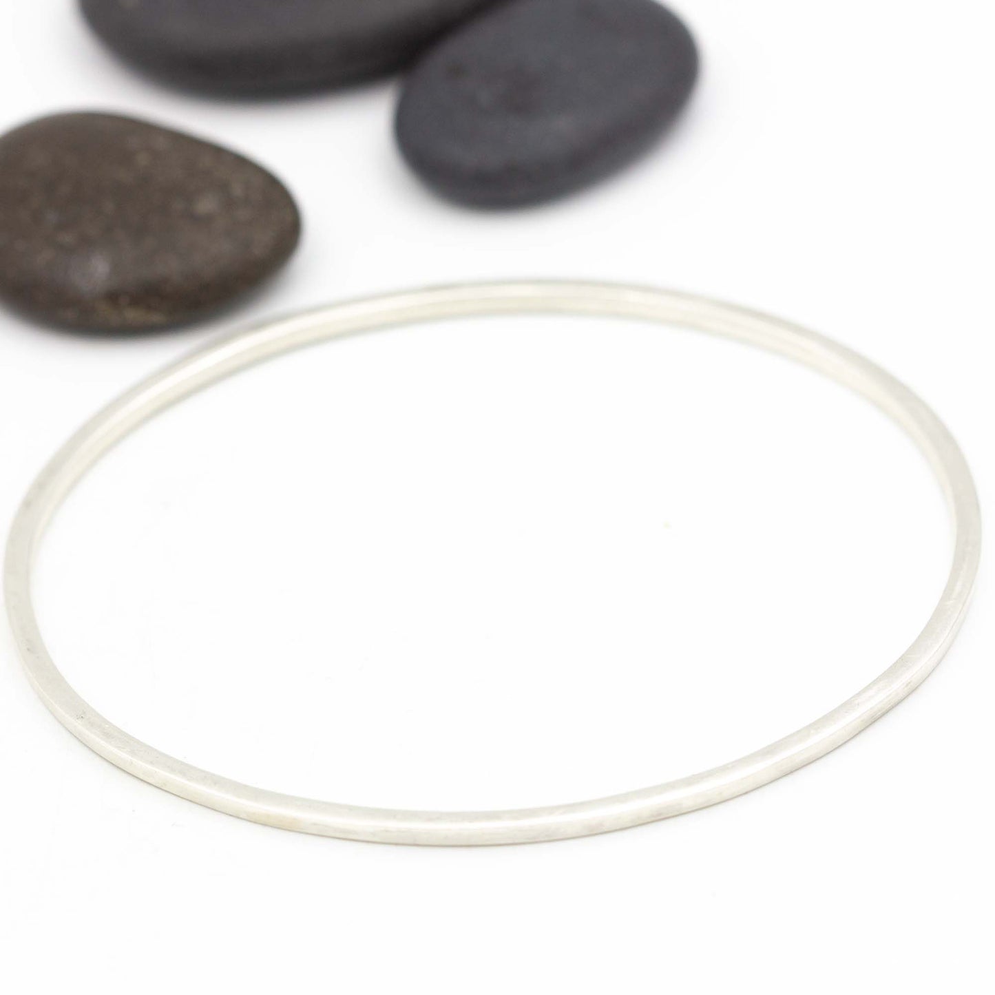 This is a lovely, slightly flattened, minimalist sterling silver bangle. It's very nice to wear, either alone or with others. It's perfect to wear at all times or to throw on as you're heading out the door, just for some unique adornment. Bangles like this usually become favorites and a part of your fantastic style. I have two available and this listing is for one only. If you'd like more, I'd be happy to make them for you.