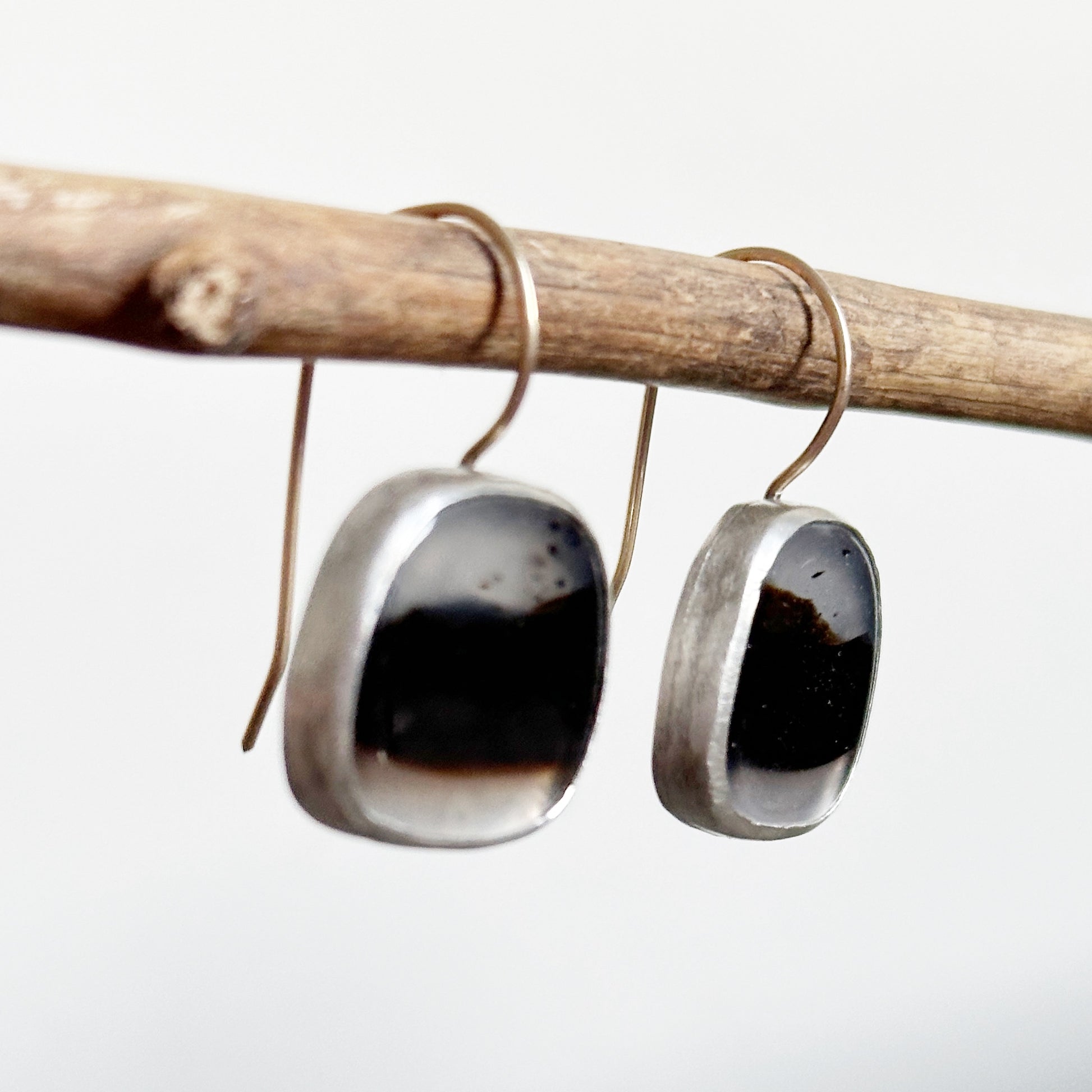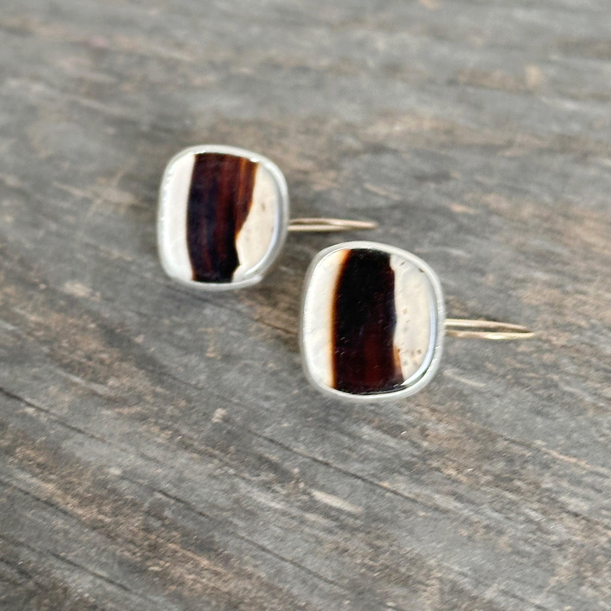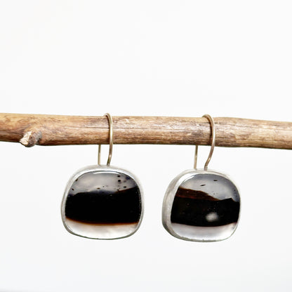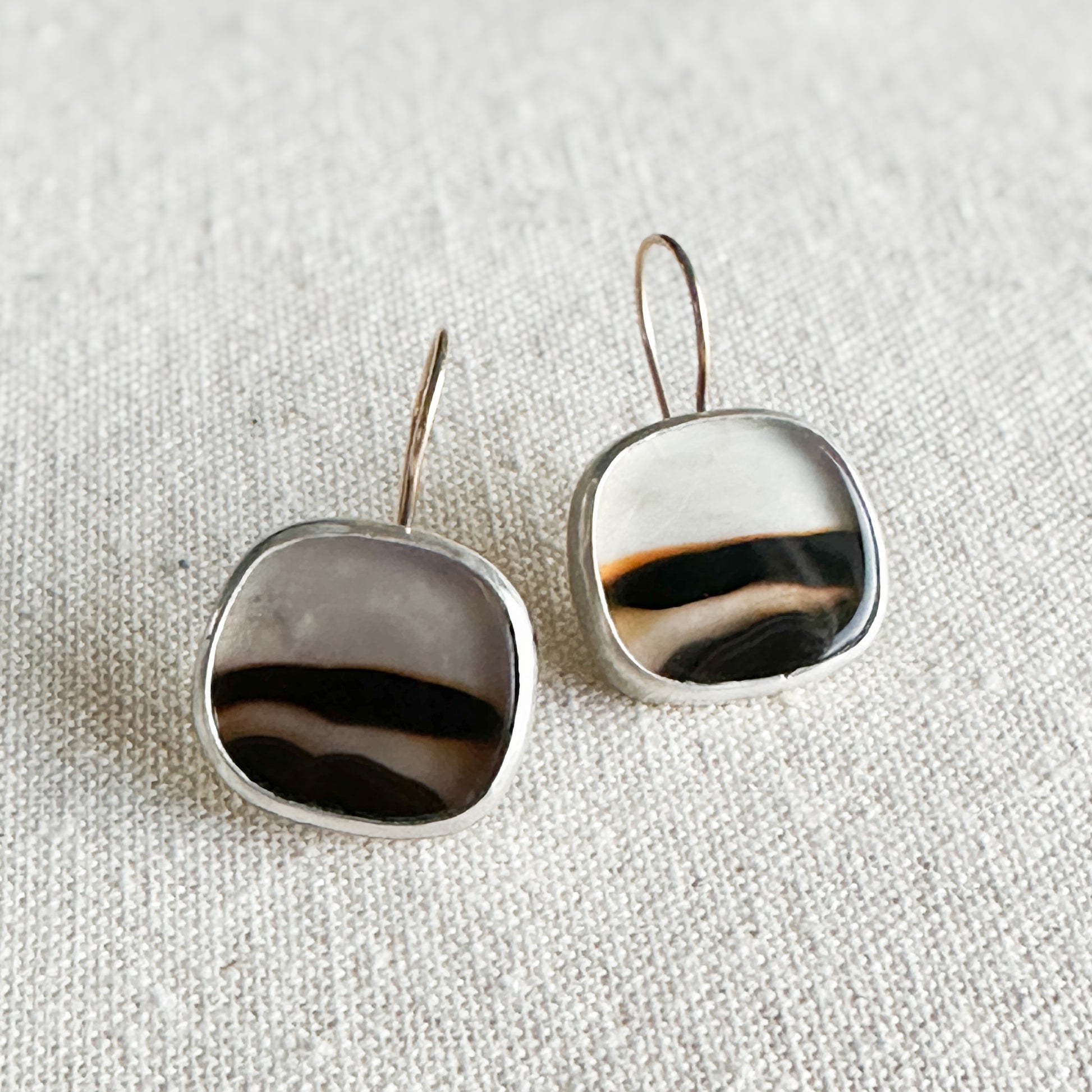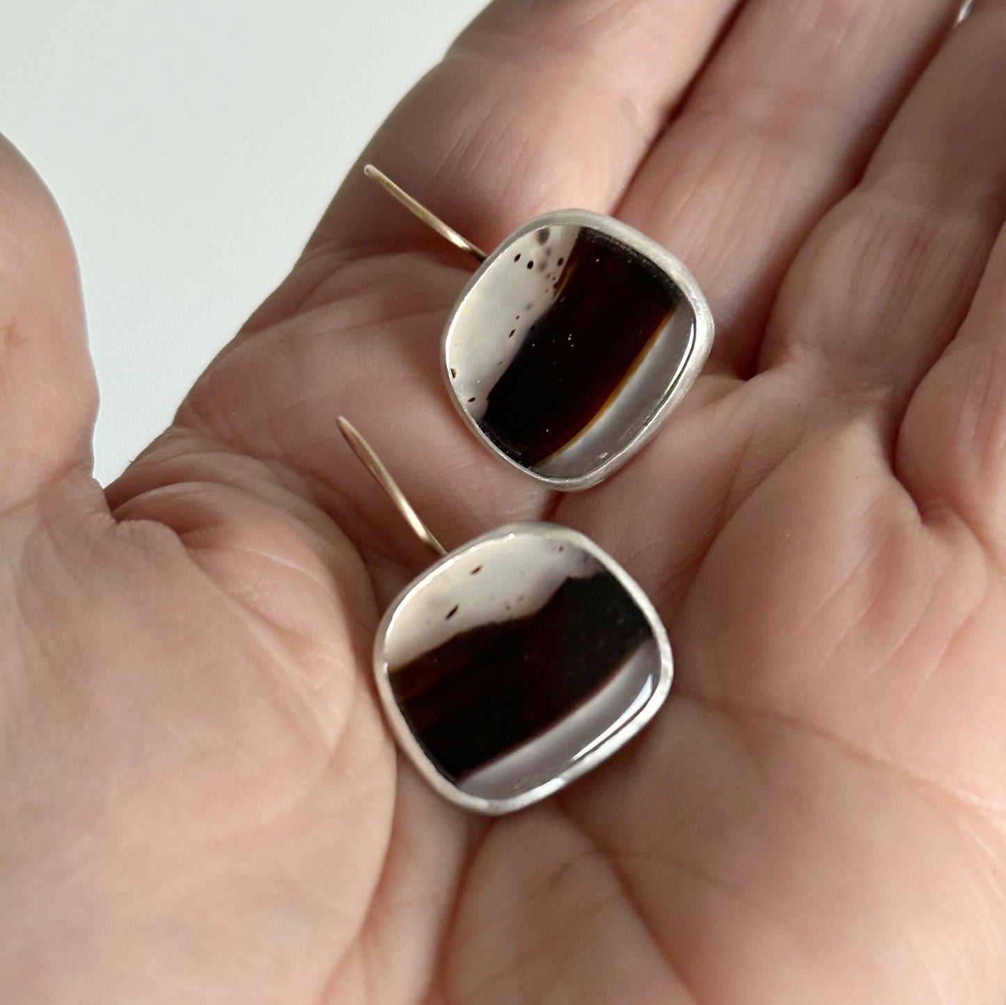 These Montana Agates are so wonderful! It was very nice to work with them, which resulted in these minimalist statement earrings. I gave them a sterling silver and fine silver bezel setting and added a 14k gold ear wires for a extra bit of luxe. You'll count these among your favorites, with their unique and bold look. You'll definitely turn heads!