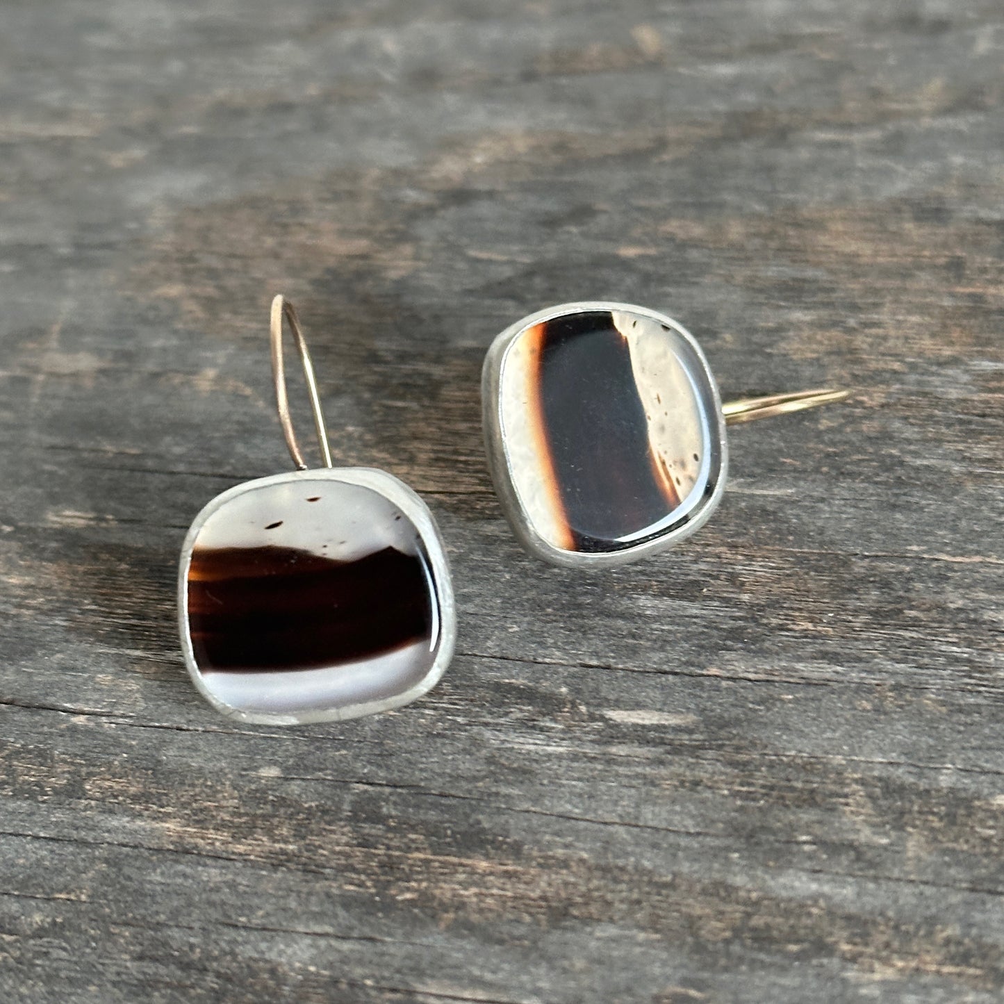 Montana Agate, Sterling Silver & 14k Gold Earrings